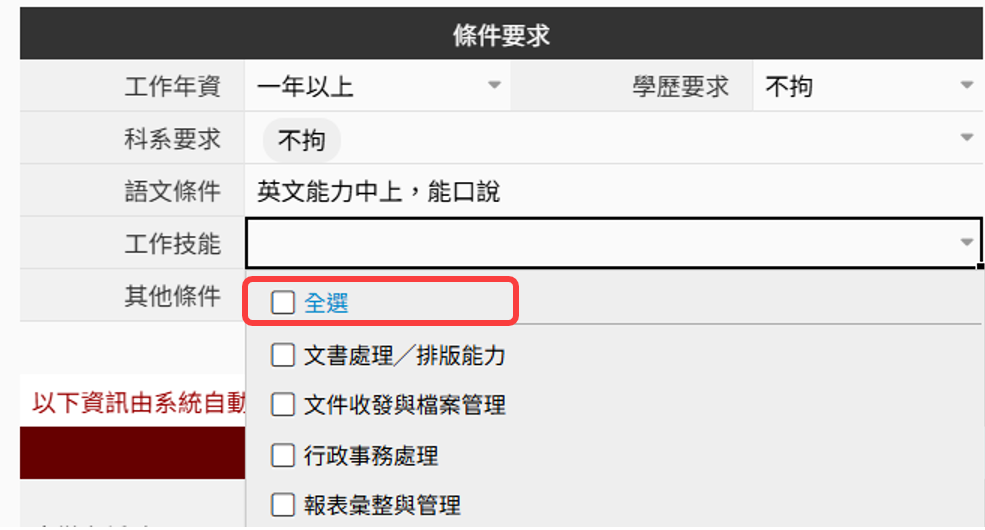 1. 支持全选:勾选后,选项清单中就会显示“全选”单击钮,可一次选取所有选项。